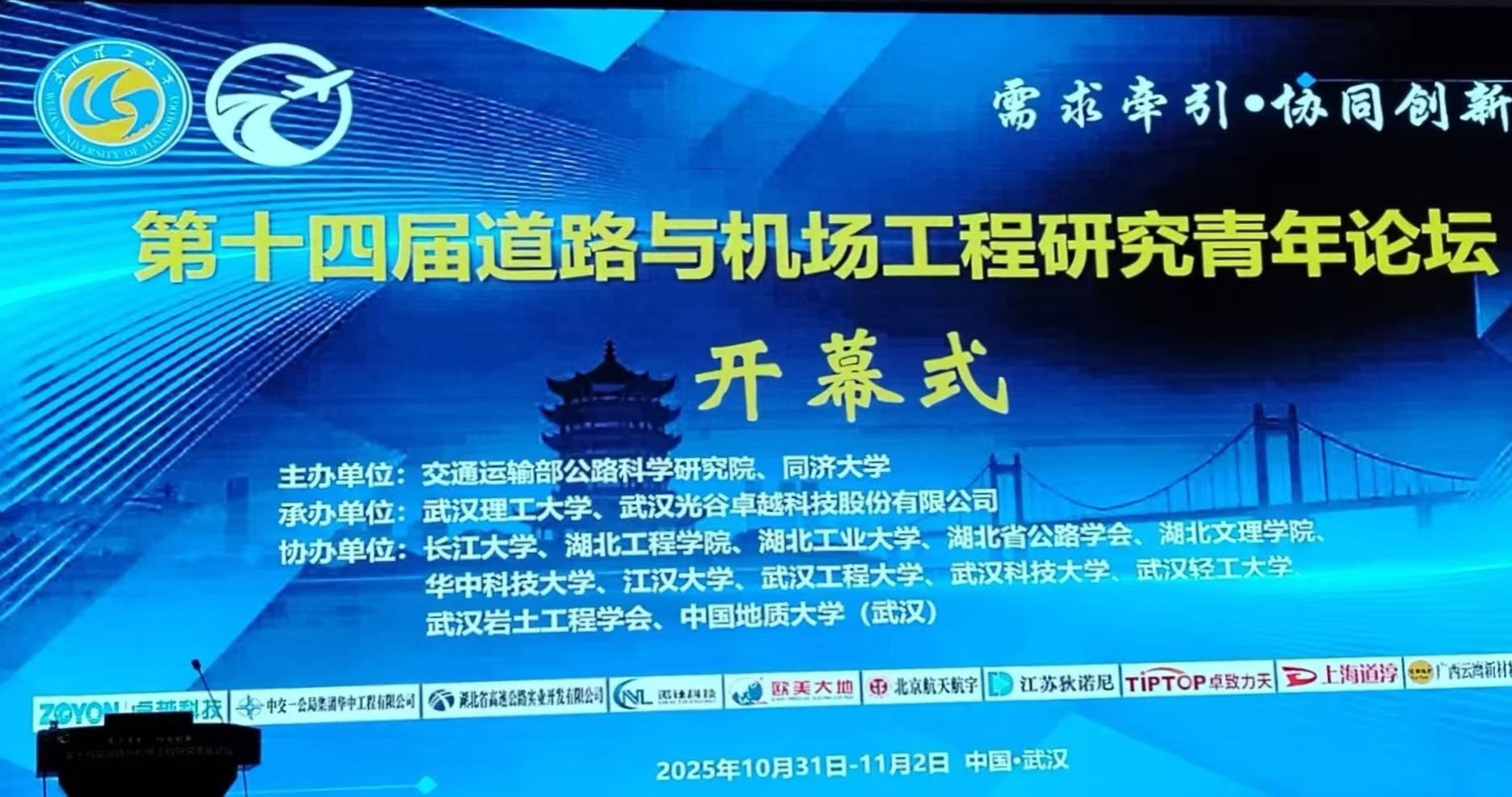 2025年10月31日至11月2日,第十四届道路与机场工程研究青年论坛在湖北武汉顺利召开。本届论坛由同济大学和交通运输部公路科学研究院联合主办;武汉理工大学与武汉光谷卓越科技股份有限公司共同承办;华中科技大学、中国地质大学(武汉)、湖北省公路学会、武汉岩土学会、武汉轻工大学等十余所省内高校和行业学会/协会协办。论坛以“需求牵引 协同创新”为主题,聚焦智能检测与运维养护、固废再生与综合路用等多个前沿方向,紧密对接行业实际需求与发展瓶颈。