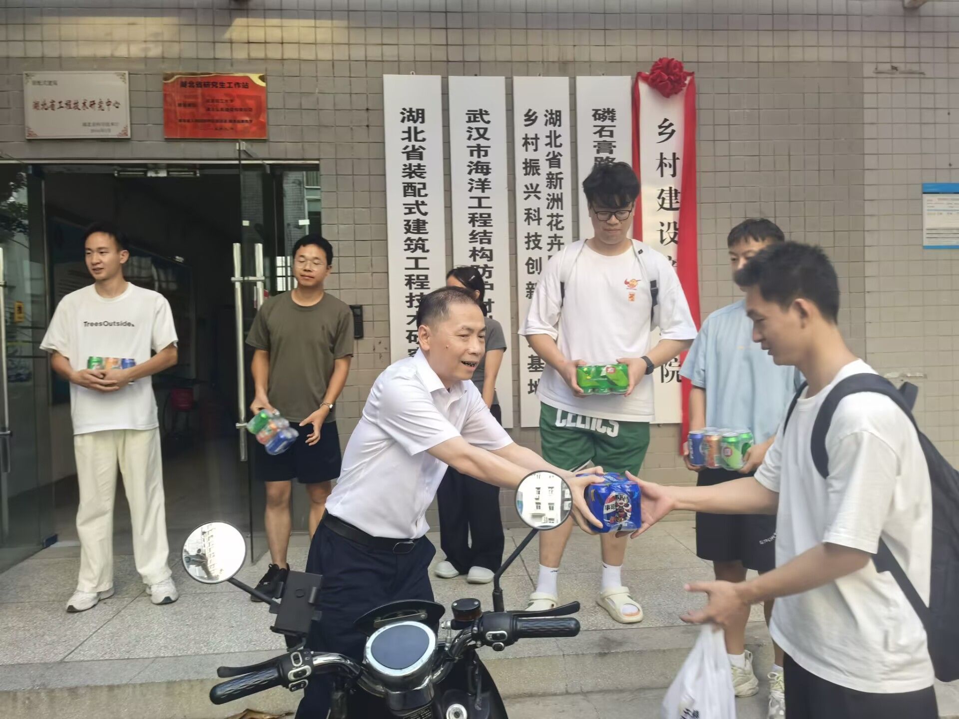 7月10日下午,土木工程与建筑学院党委书记刘晶、副书记杜典初与辅导员邓成龙、田琦深入考研自习室与学生宿舍,走访慰问暑假留校的研究生及22级考研学子,为炎炎夏日里坚守的学子们送上可乐汽水等清凉饮品,传递学院的深切关怀。