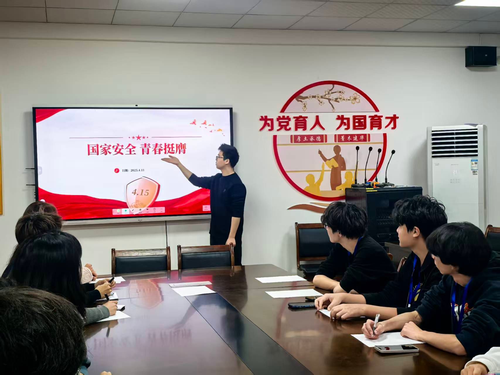 为深入学习贯彻总体国家安全观,增强青年学子的国家安全意识和素养,在第十个全民国家安全教育日来临之际,土建学院学生党团工作中心在1411会议室组织开展“学习总体国家安全观”主题团课活动。本次活动由学生党团工作中心部长陈天龙担任主讲人,全体部员共同参与,通过理论学习、案例分析与专题片观摩相结合的形式,引导青年学子筑牢国家安全思想防线。